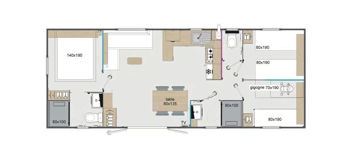 Our rentals mobile-homes are recent and spacious. They are equiped with :