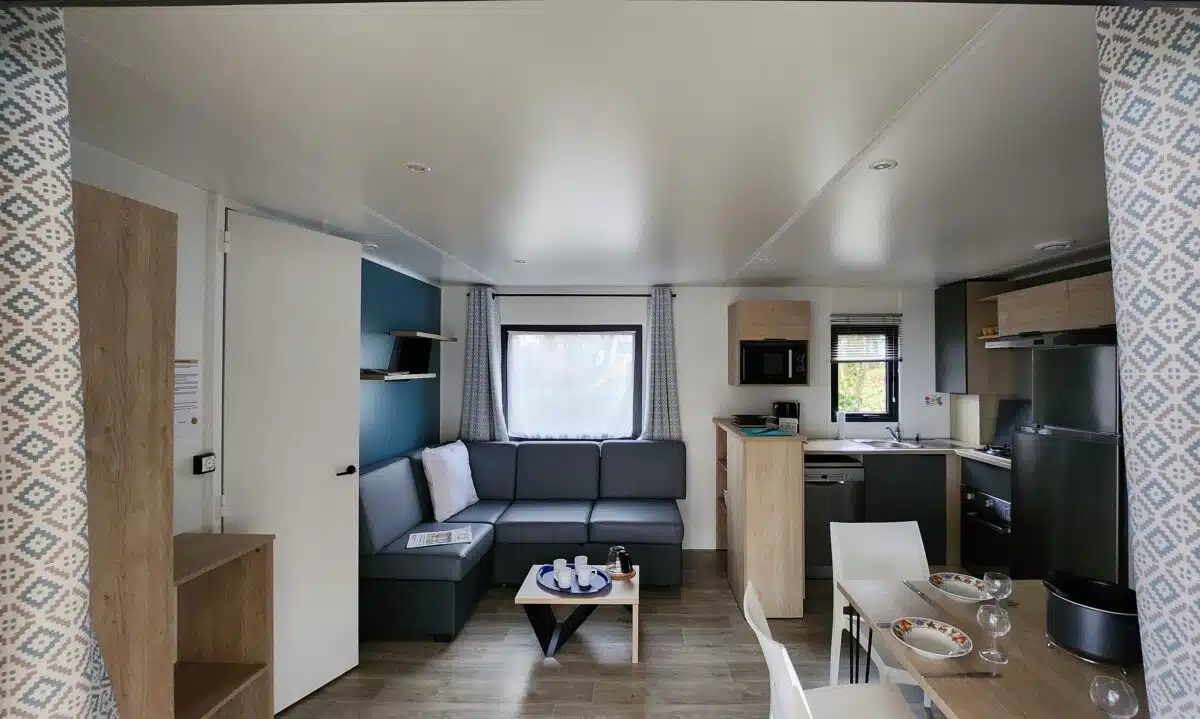 Nous proposons des mobil-homes de 1 à 3 chambres, adaptés aux couples, familles ou personnes seules. Chaque logement est équipé d’une cuisine, d’un salon (avec TV), d’un place de parking privé et d’une terrasse.
